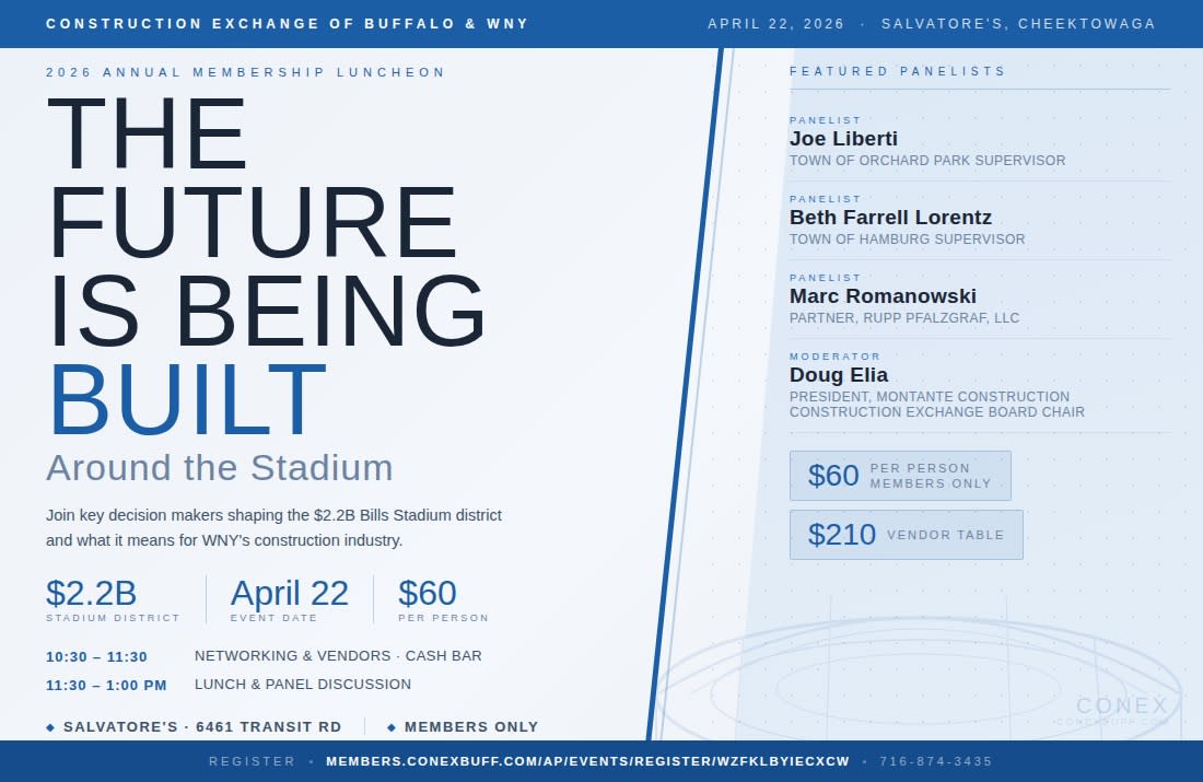 Join key decision makers shaping the $2.2B Bills Stadium district and what it means for WNY's construction industry.